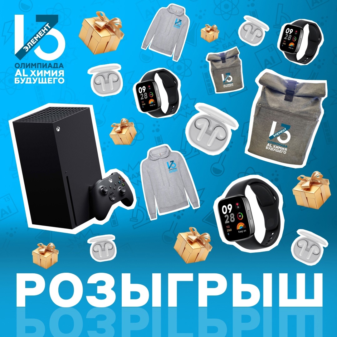 Среди всех зарегистрированных участников олимпиады [vk.com/13element_al?w=wall-154841135_7014|разыгрываются крутые призы]: Xbox, смарт-часы Xiaomi Redmi Watch 3 Active, наушники и крутой мерч олимпиады.
