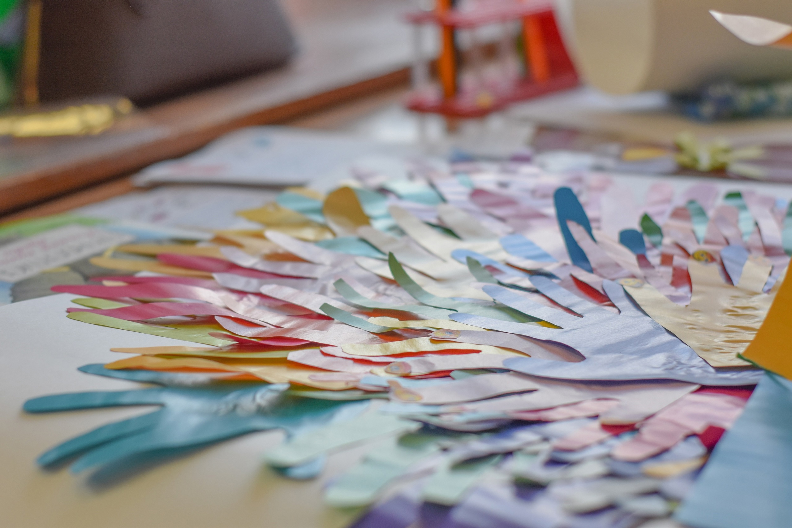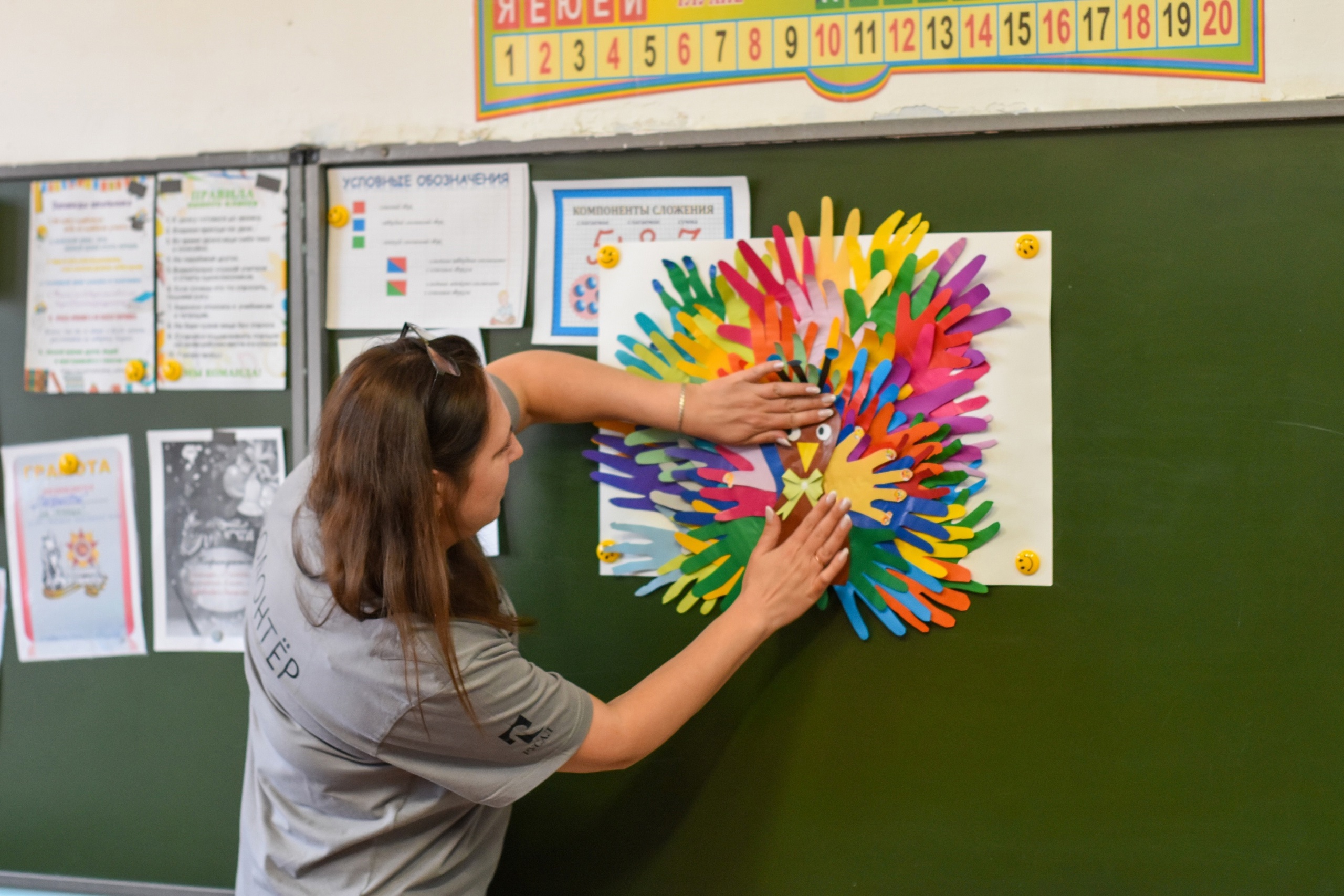 Большой, яркий проект волонтеров РУСАЛа «В гостях у нейросказки» в подшефной школе с интернатом №27 завершился творческой встречей. Больше полутора лет сотрудники Уральского алюминиевого завода, читая сказки, помогали ребятам с особенностями развития познавать мир, раскрывать новые черты характера и развиваться. На последней встрече на память об этой важной части жизни волонтеры и школьники создали чудо-птицу павлина из ладошек участников проекта.