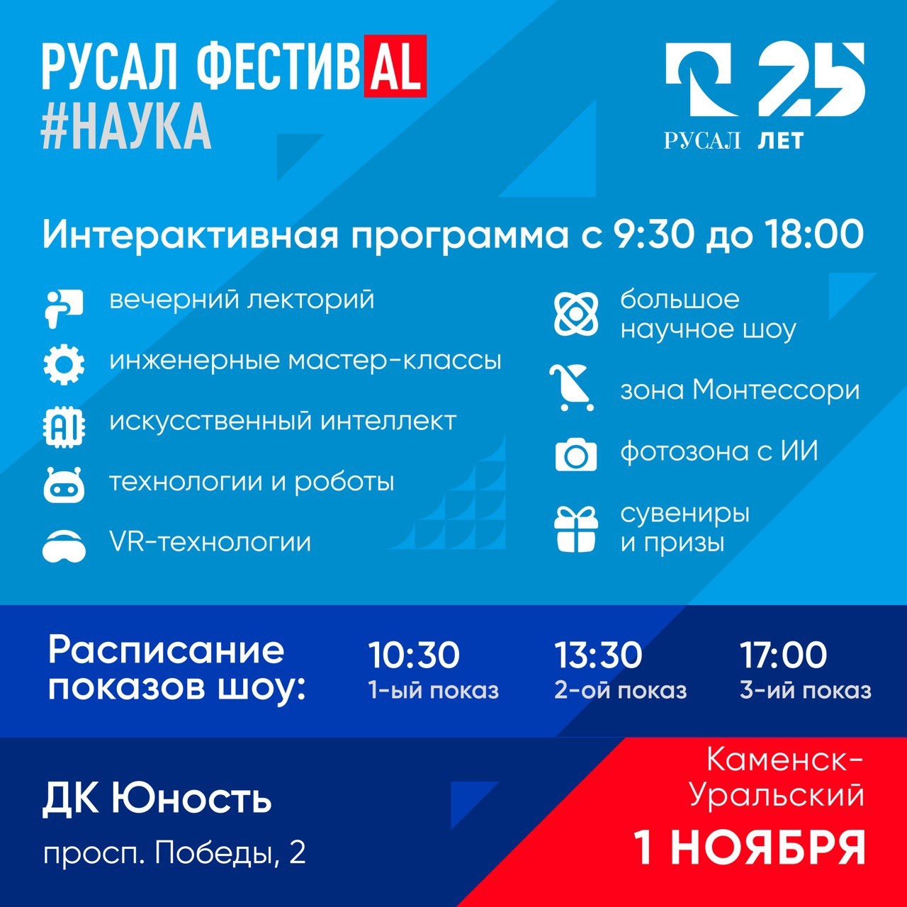 Друзья, уже в эту субботу, 1 ноября, в Каменске-Уральском состоится РУСАЛ ФестивAL#НАУКА!